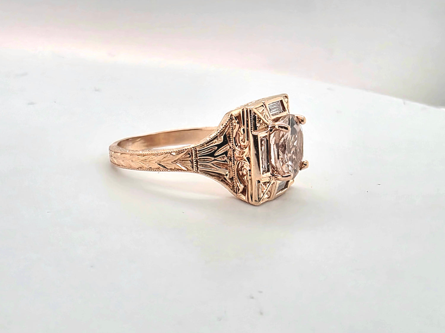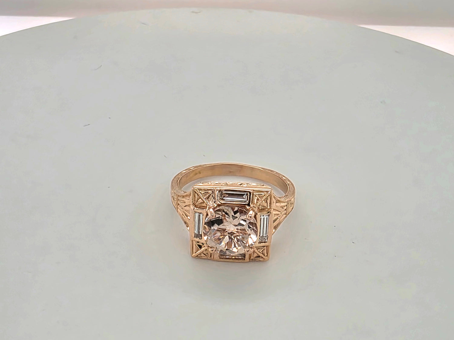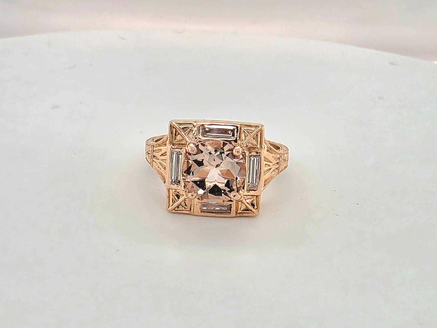 Natural 2ctw Morganite Ring With .4ctw Accents Diamonds (VS) In 18kt Rose Gold Weighing 6.11g Size 7.5