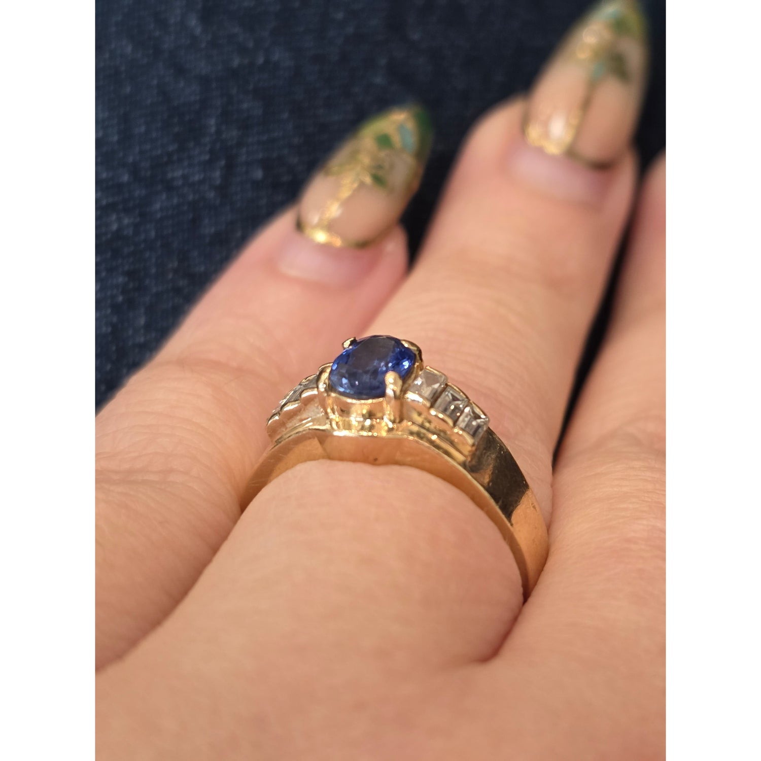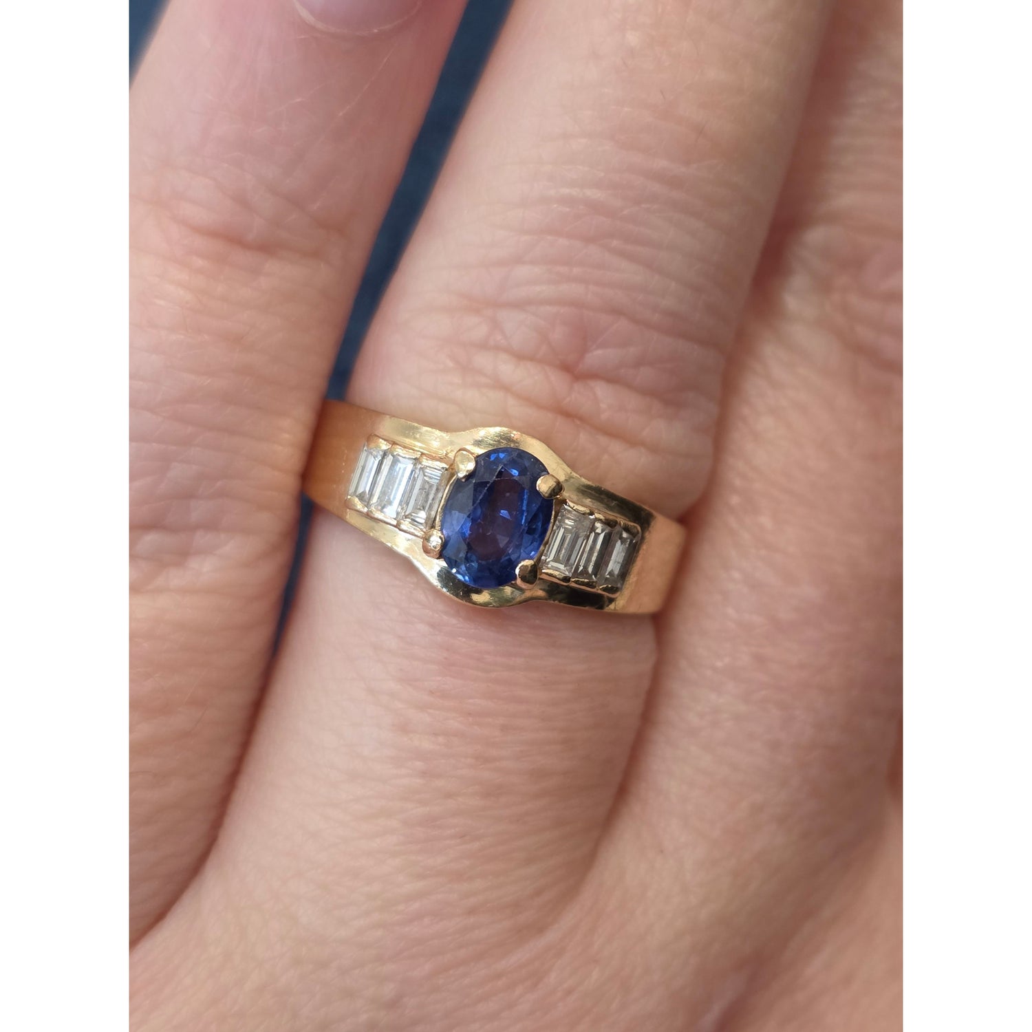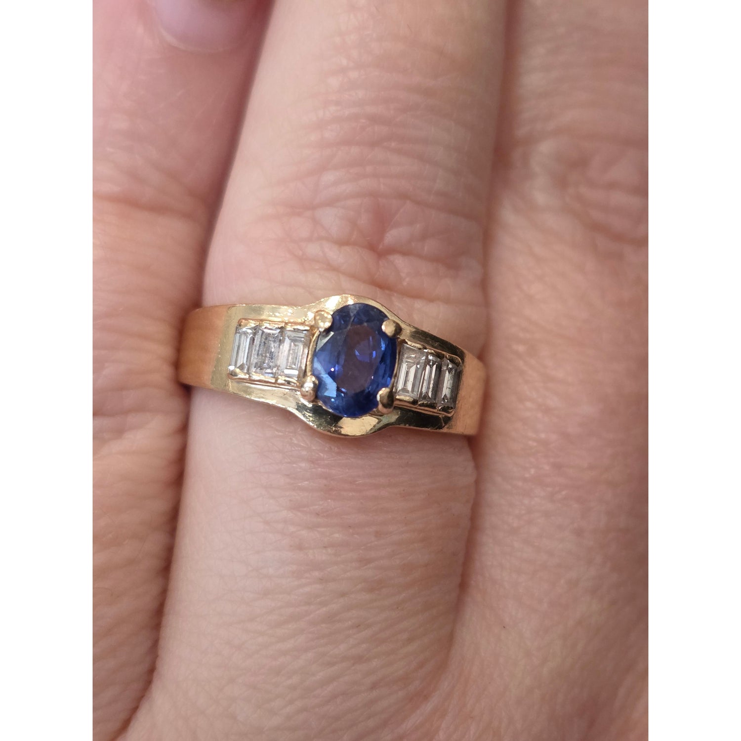 Natural 3/4ctw Sapphire With 1/4ctw Diamond Accent Ring In 14kt Gold Weighing 5g Size 8