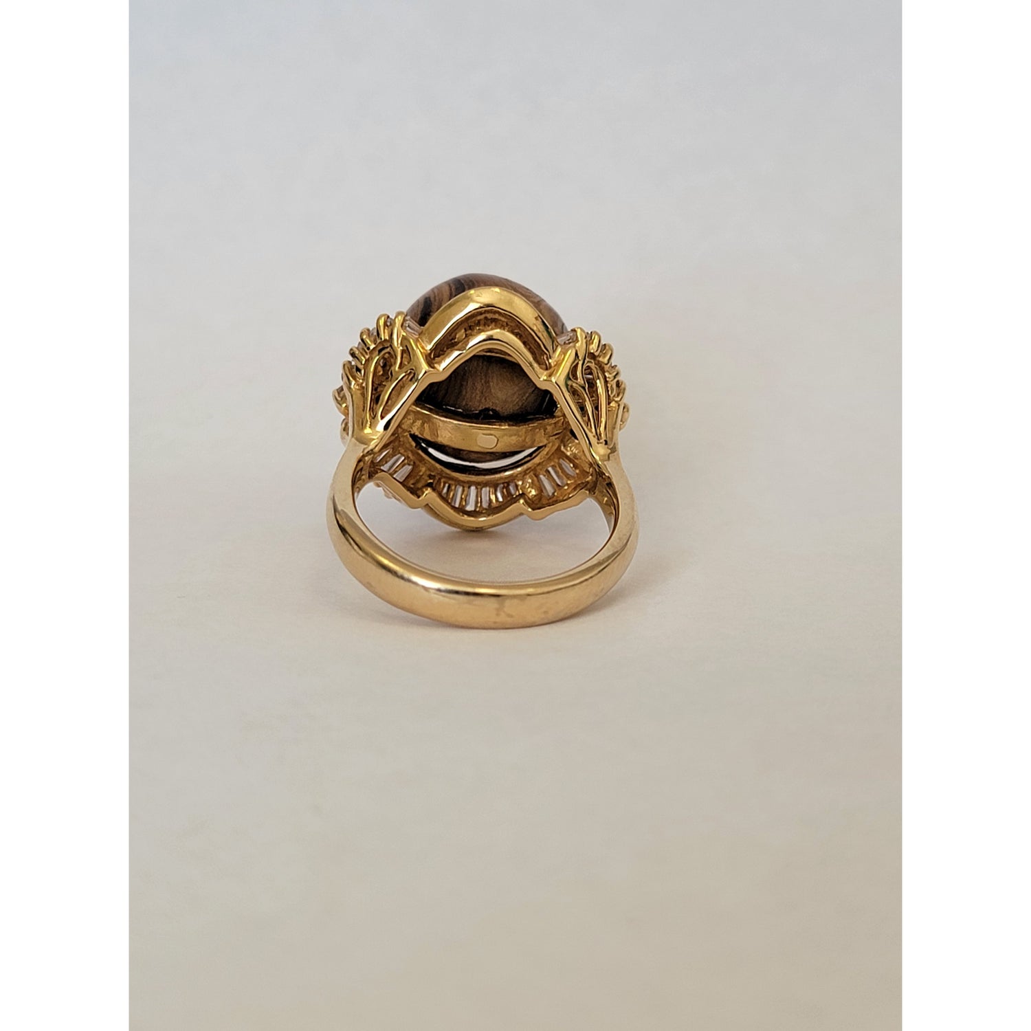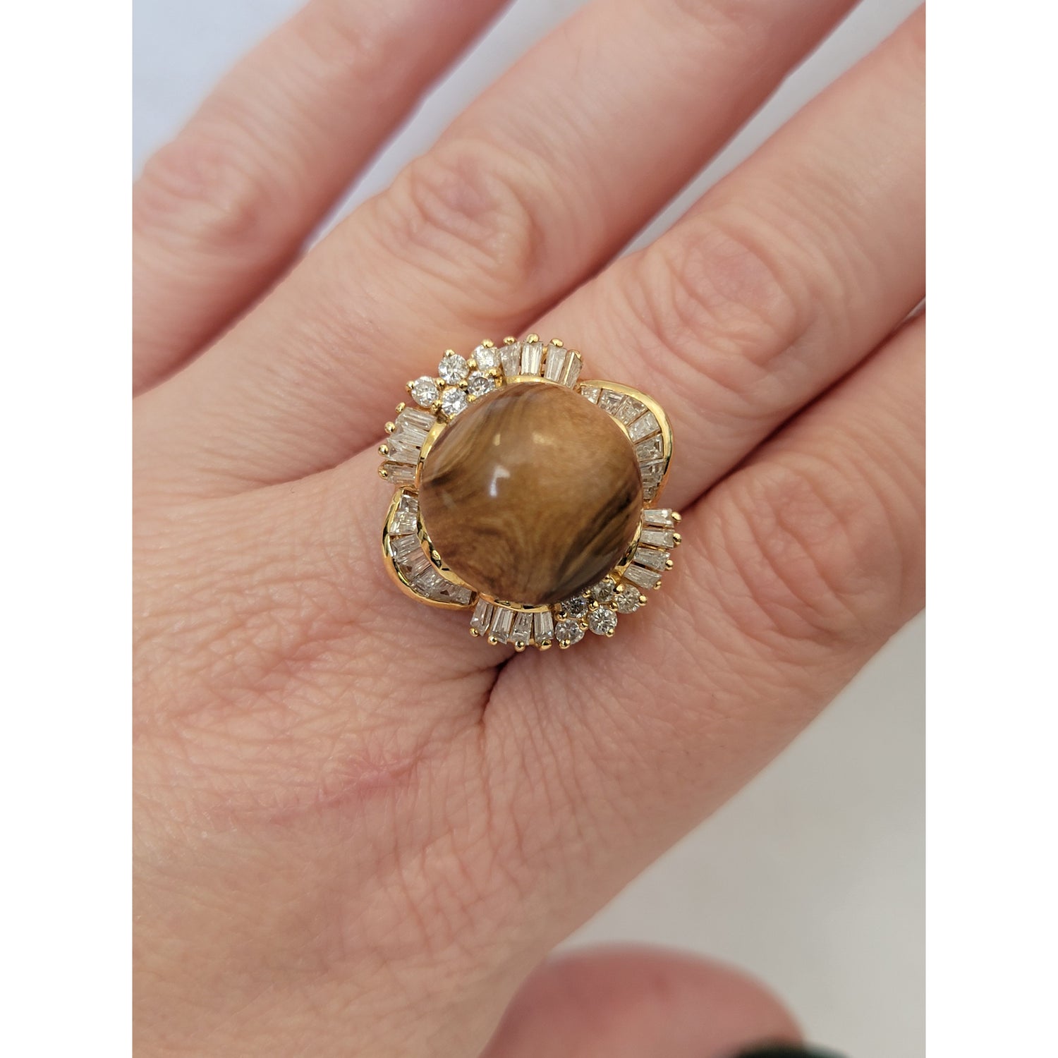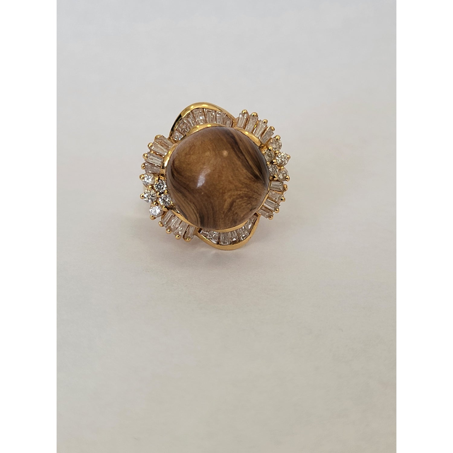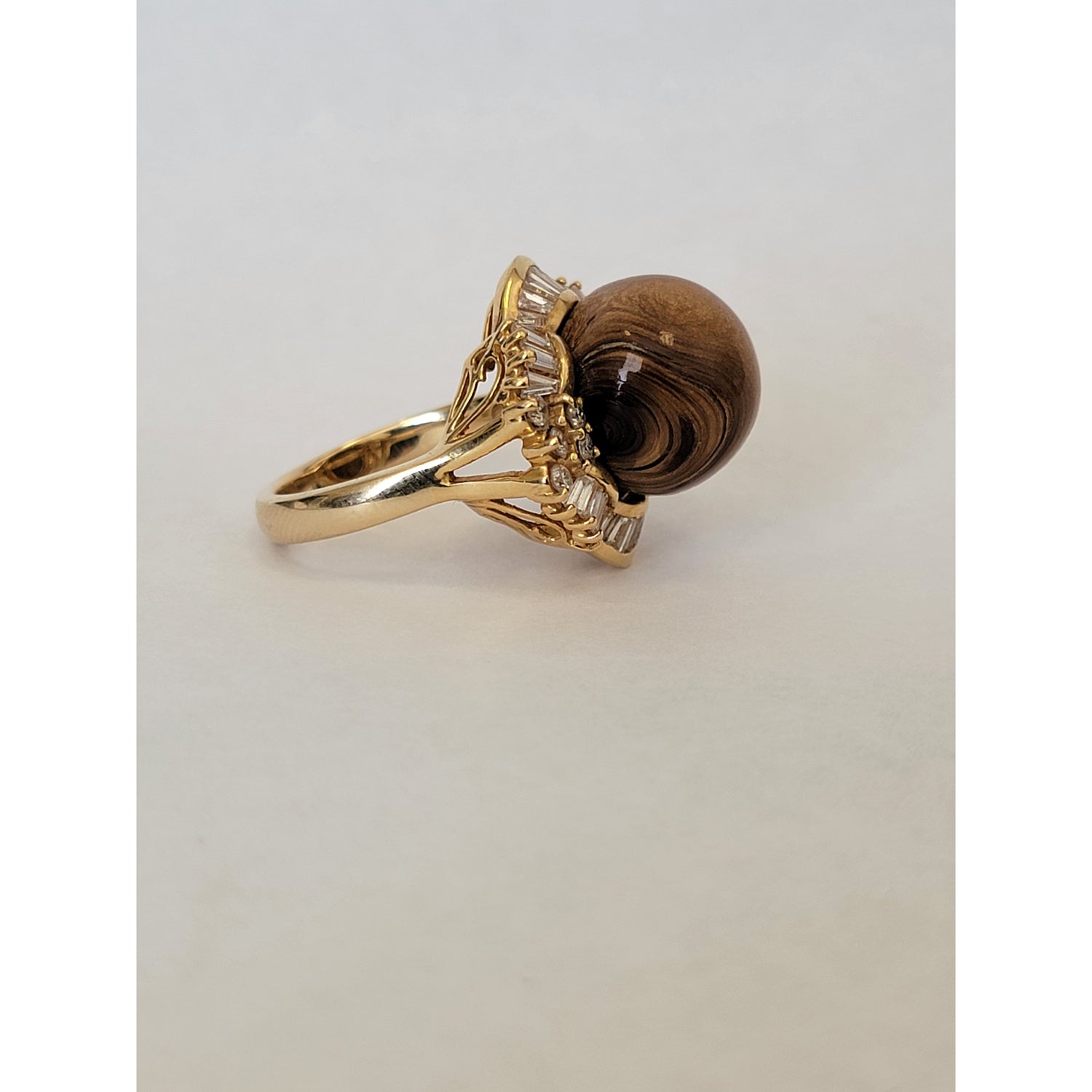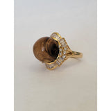 Petrified Wood Ball With 1ctw Accent VS Diamonds In 14kt Gold Weighing 16g Size 9